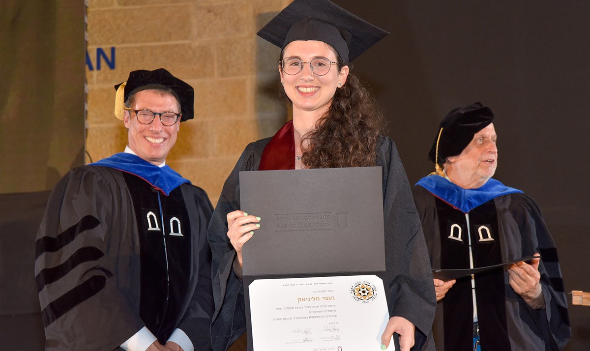 In his citation for Yehoram Gaon, lecturer of Arabic and director of Shalem’s Arabic Studies Program Dr. Arik Sadan encouraged graduates to look to Gaon as a model of how to bring about the this change. “The force that motivated Yehoram Gaon to seek peaceful relations between Arabs and Jews; to call for the inclusion of the ultra-Orthodox sector as an integral part of Israeli society; to raise awareness of the beauty of Mizrahi (Eastern) Jewish tradition and its contribution to Israeli culture; and to advocate for soldiers, autistic children, cancer patients, and many, many more groups in our state, does not come from anger, disappointment, or contempt, and certainly not from cynicism. Rather,” explained Sadan, “It comes from love, faith, and belief in our shared ability to create a better reality.”