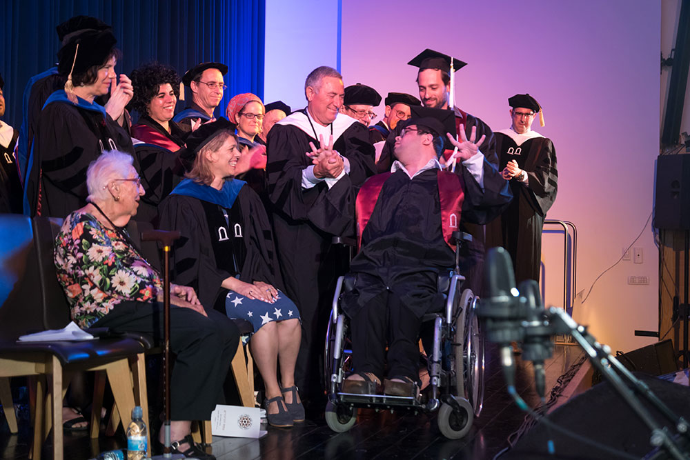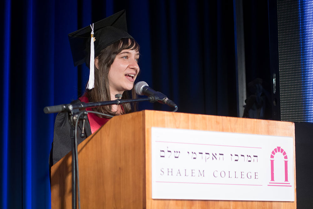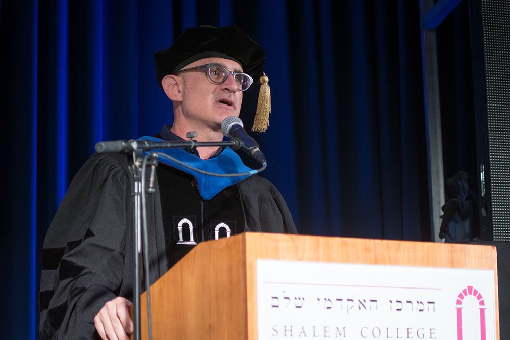 Before the graduates were called up onstage to accept their certificates of completion, Dr. Daniel Gordis, senior vice president, Koret distinguished fellow, and chair of the Core Curriculum Department, warned them of the particular challenges they faced, and reminded them that these challenges are precisely “why you have spent the last four years at Shalem.” Explaining “there is nothing guaranteed about the future of human freedom, nothing assured about the survival of the most noble form of liberalism, nothing inevitable about the future of a free press or even a Jewish and democratic State of Israel,” Gordis concluded with a metaphorical, and moving, passing of the baton: “The future of this place—this state, this society, this city and much more—depends on you.”