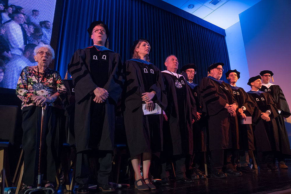 Following in the tradition of its inaugural commencement, the 2018 ceremony honored two individuals who have made a notable contribution to the Jewish state and people: Maj. General (res.) Doron Almog and Prof. Alice Shalvi. Almog, over the course of his storied 34-year career in the IDF, was the first officer on the ground in Israel’s famed Operation Entebbe; the commander of “Operation Moses,” which airlifted Ethiopian Jews to Israel; and, between 2000-2003, the head of the IDF’s southern command. In 2016, Almog received the Israel Prize for lifetime achievement, awarded for his work as founder of a one-of-a-kind rehabilitation village for disabled youth in the Negev. The village was named in honor of his son, Eran, who was born with severe cognitive disabilities, and who was himself named after Almog’s brother, who died in the Yom Kippur War.